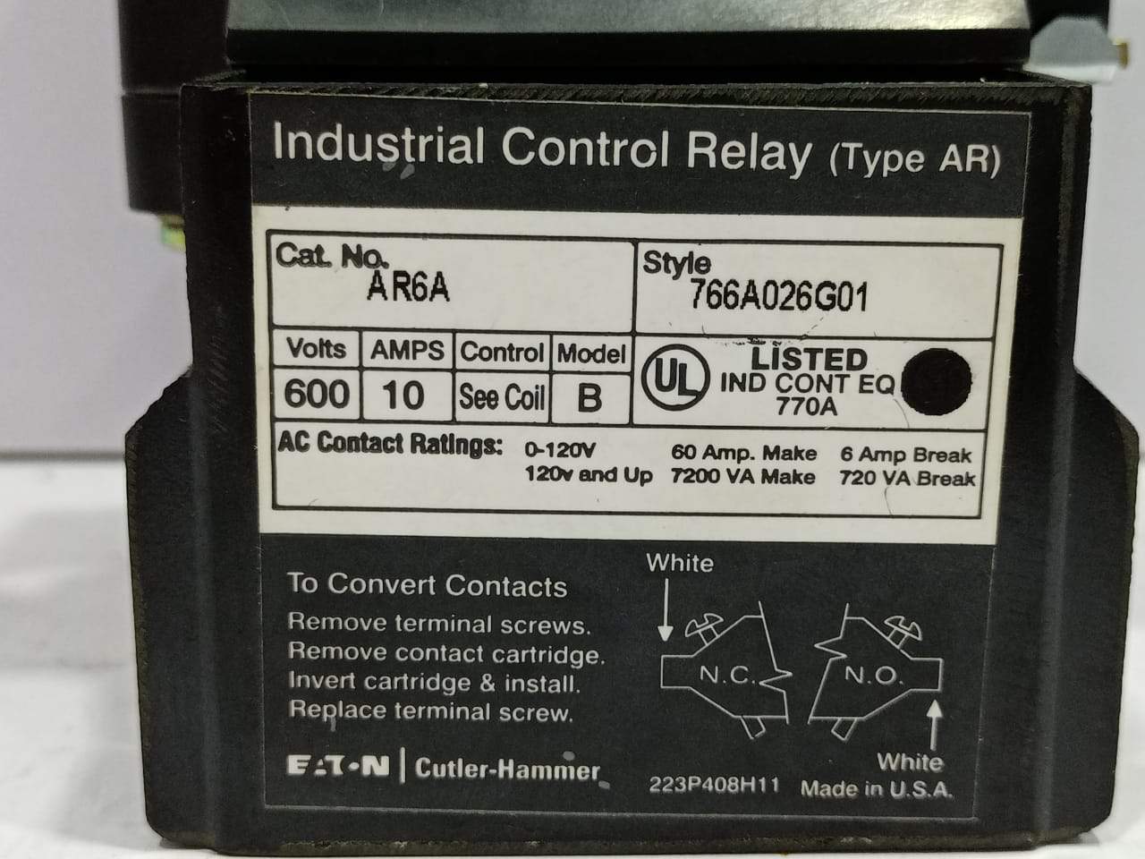 Eaton Cutler Hammer AR6A Industrial Control Relay
