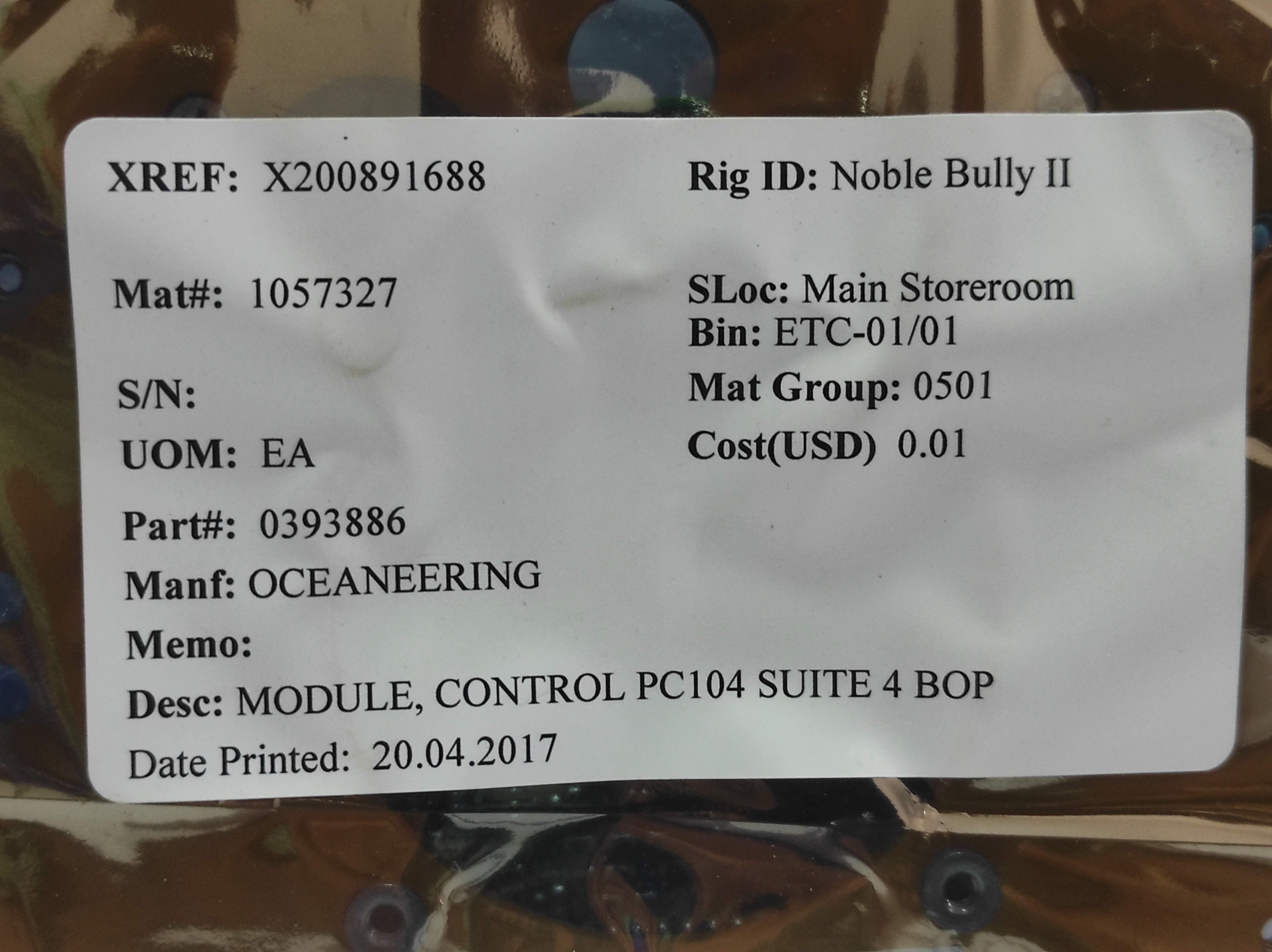 Oceaneering 0393886 Control PC104 Suite 4 BOP Module