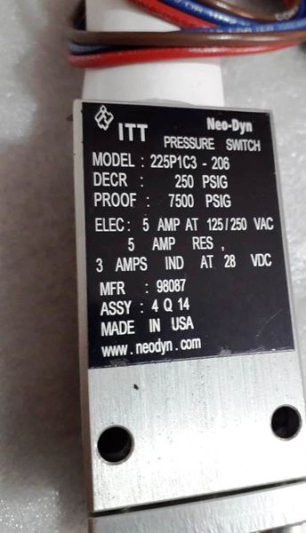 ITT Neo-Dyn Pressure Switch Model 225P1C3-206 Decr 250 psig New