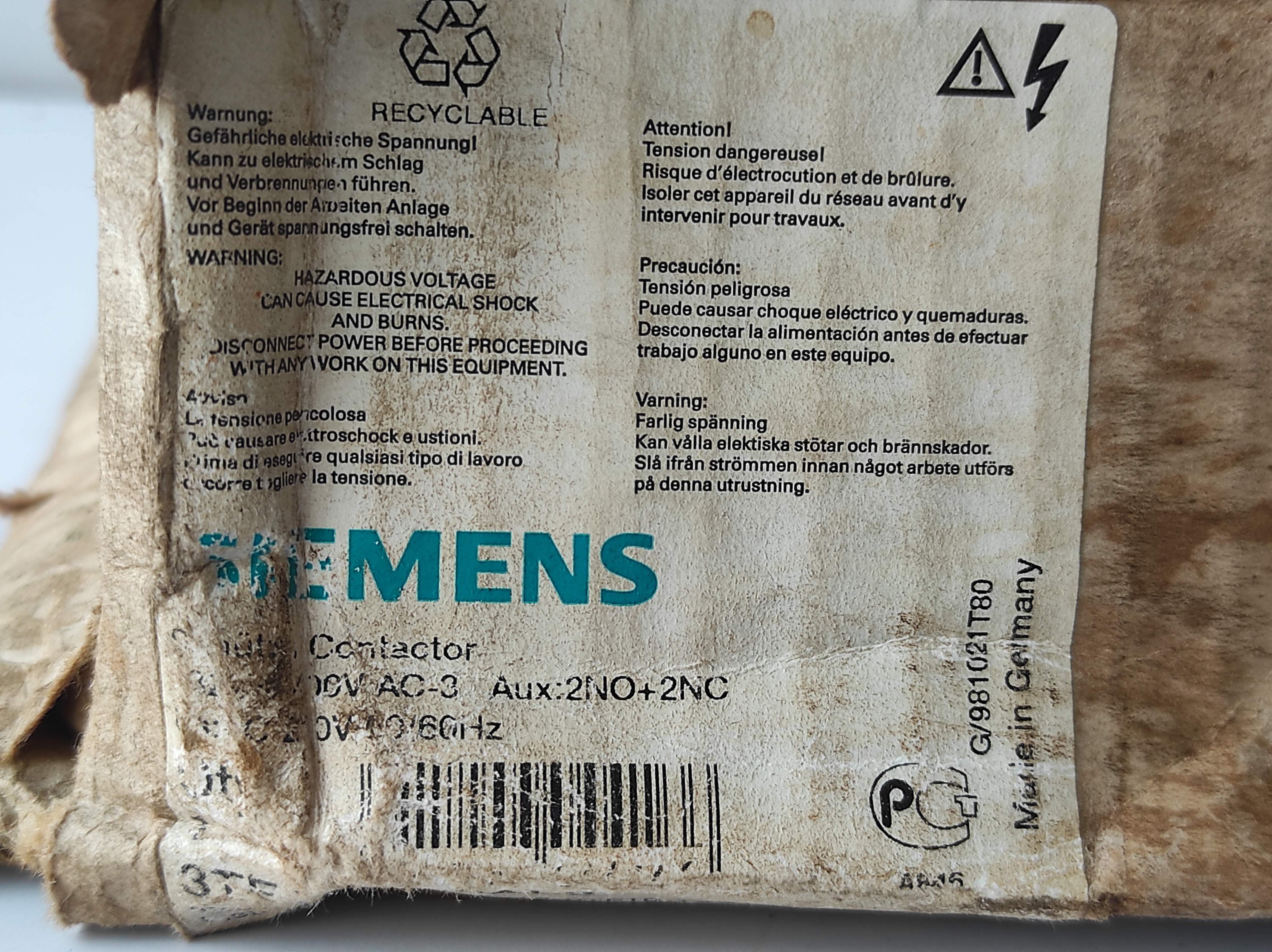 Siemens 3TF5422-0AL2 Contactor 230V 50_60Hz