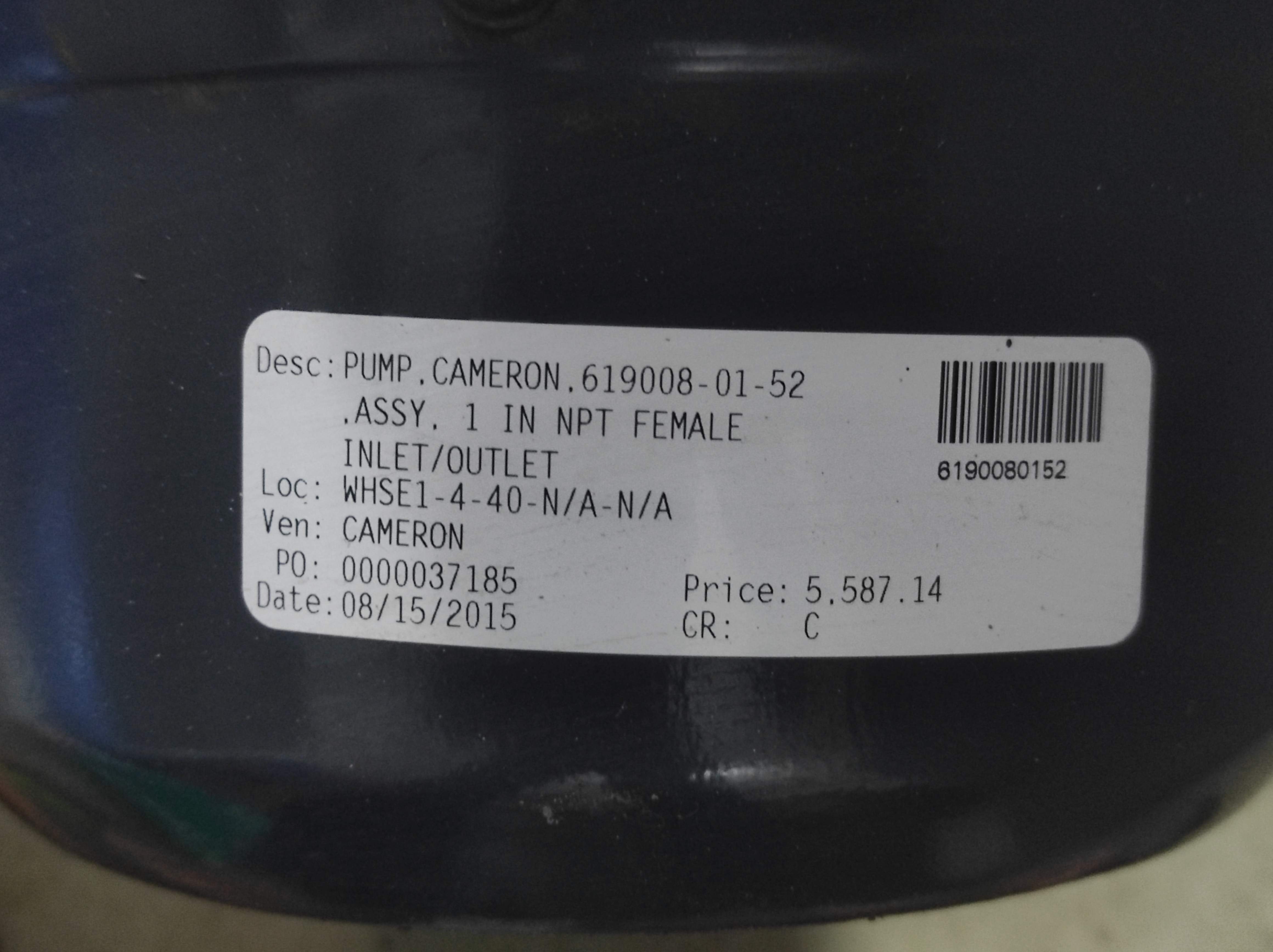 Cameron 619008-01-52 Pump Assembly 1In NPT Female, Pump, Flange & Motor 10Bar 480V