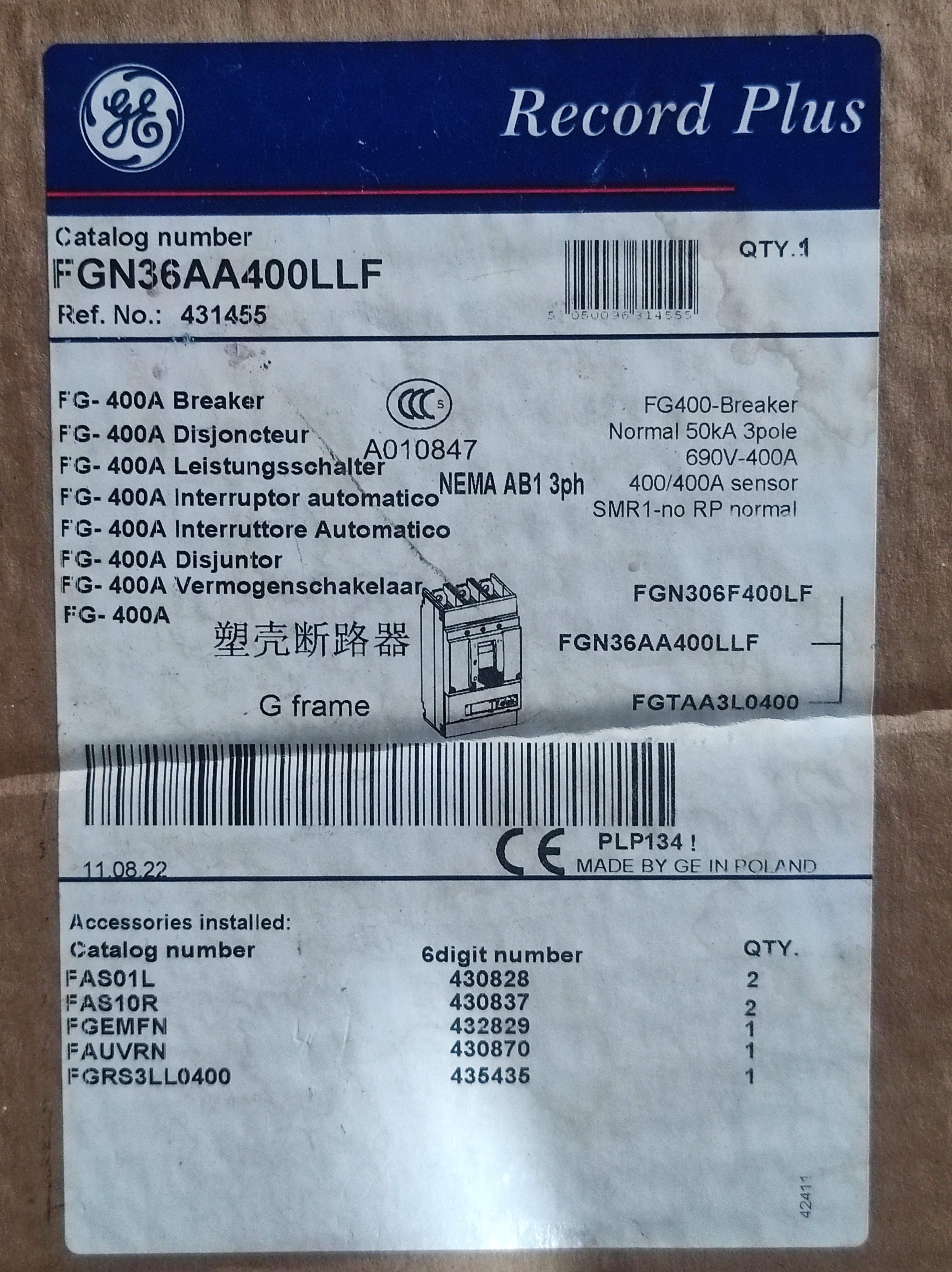 GE FG-400A Record Plus Circuit Breaker
