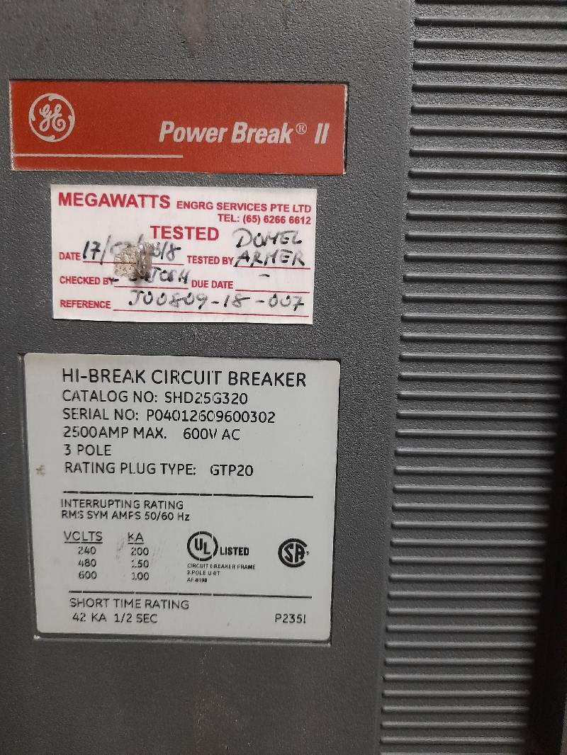 GE Power Break II SHD25G320 HI-Break Circuit Breaker 2500A Frame Rating & 2000A Trip Unit