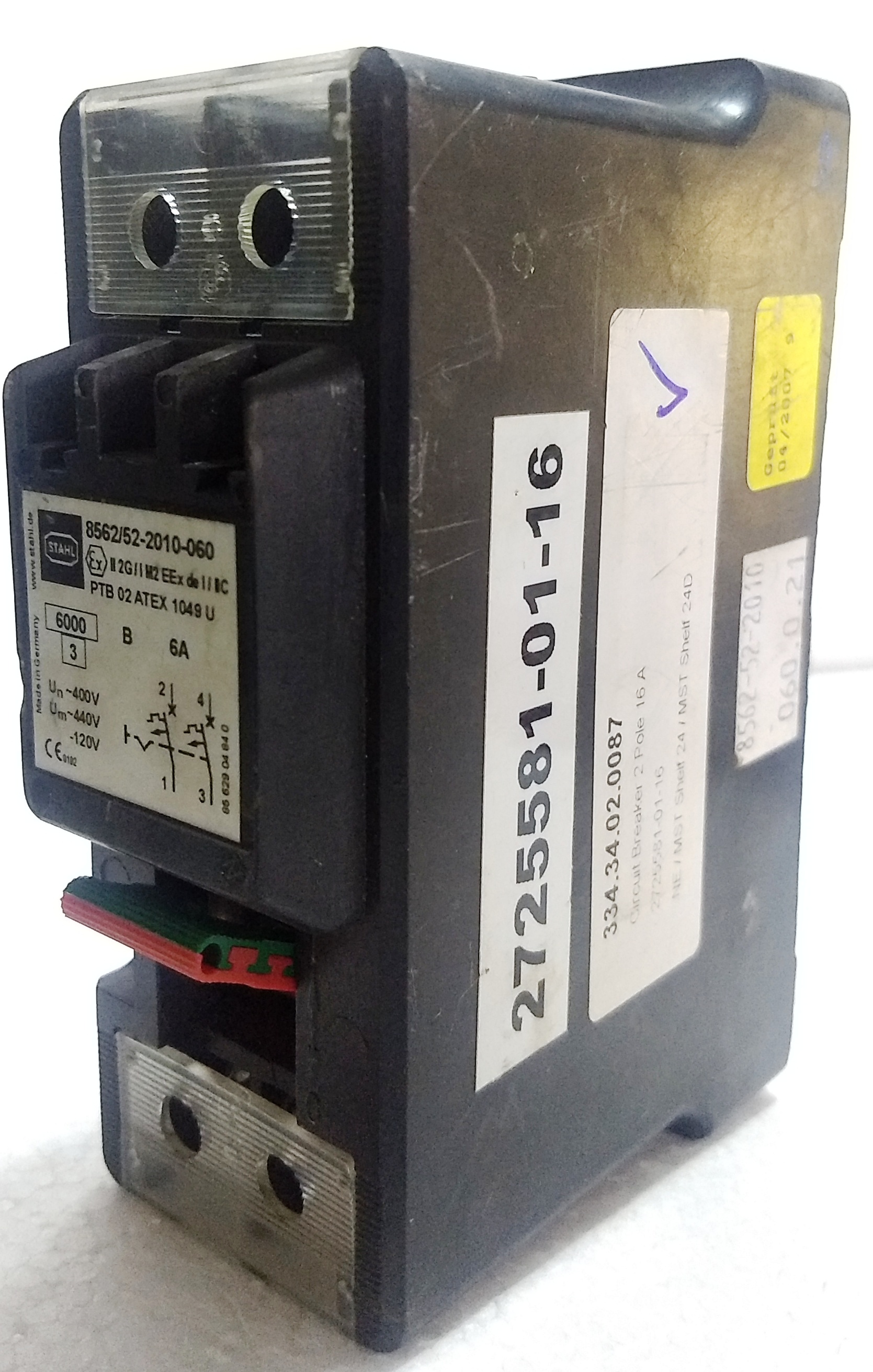 STAHL 8562/52-2010-060 Circuit Breaker 2 Pole 16A PTB 02 ATEX 1049 U