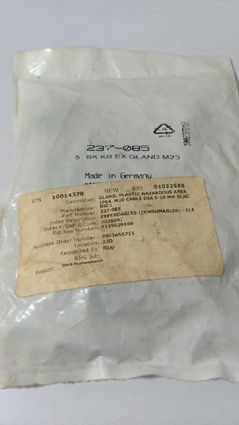 Gland Plastic Hazardous Area IP64 M20 Cable Dia 5-10mm RSC1 - 237-085 - 5 pc lot