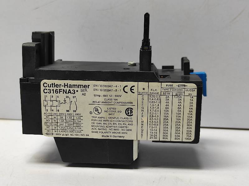 Eaton Cutler Hammer C316FNA3R Series A2 Thermal Overload Relay