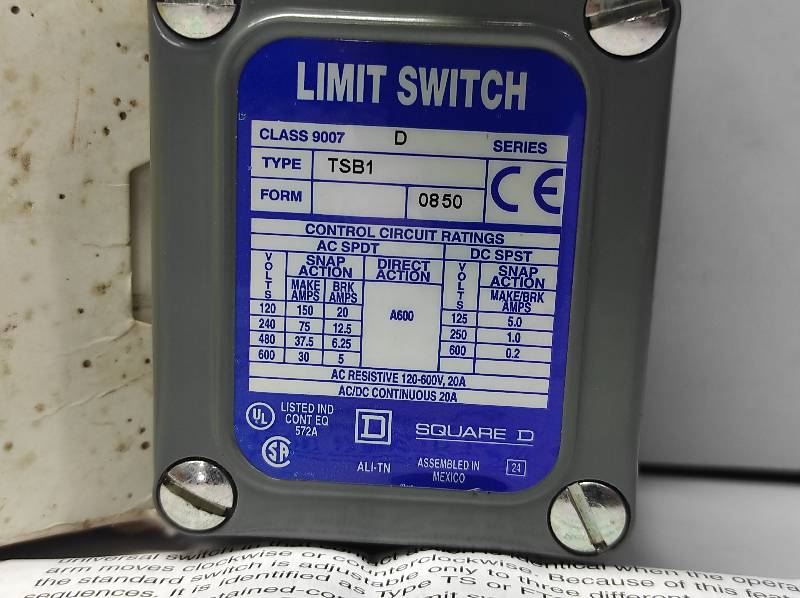 Square D 9007TSB1 Ser D Heavy Duty Position Switch Standard Limit Switch