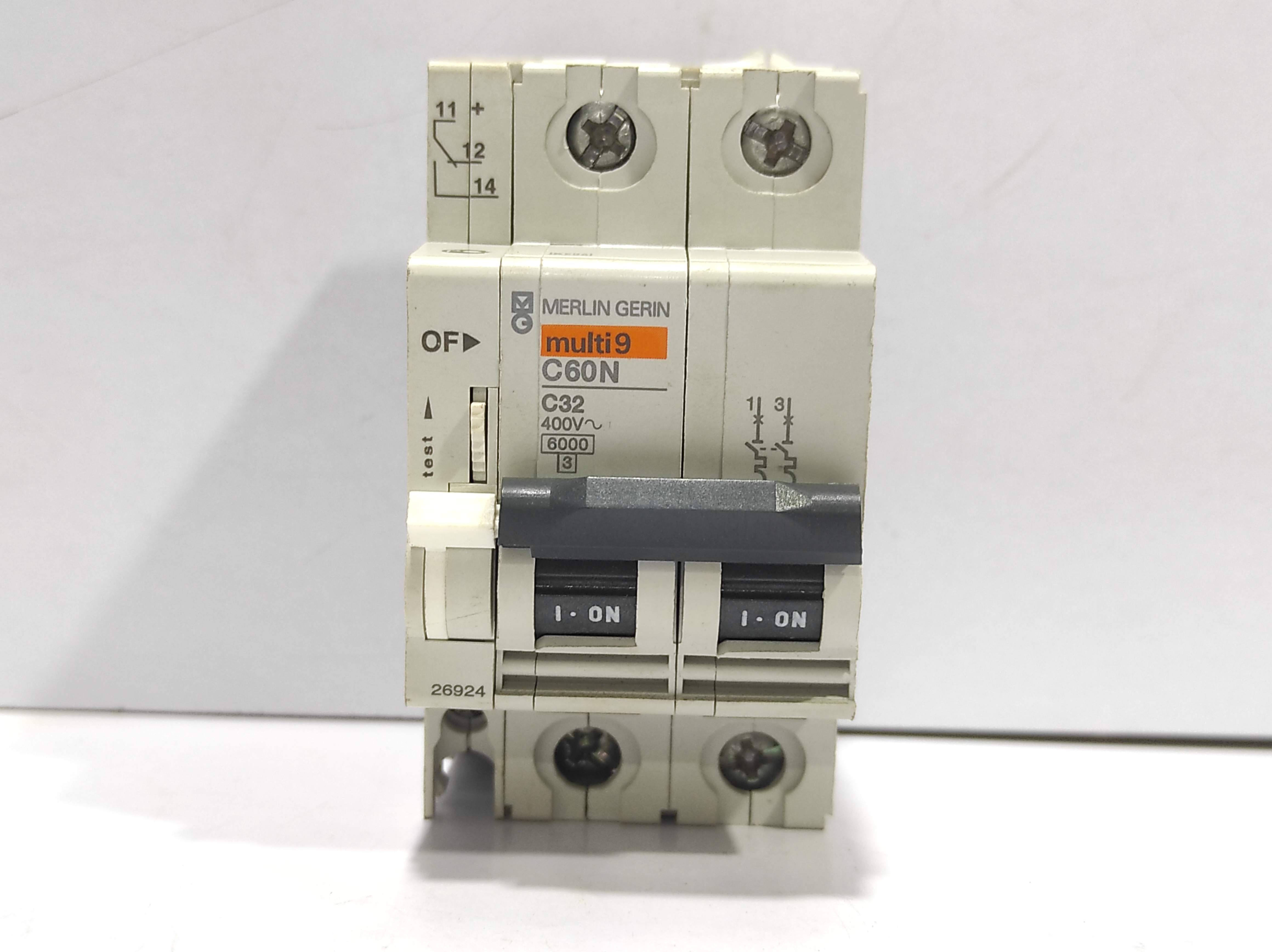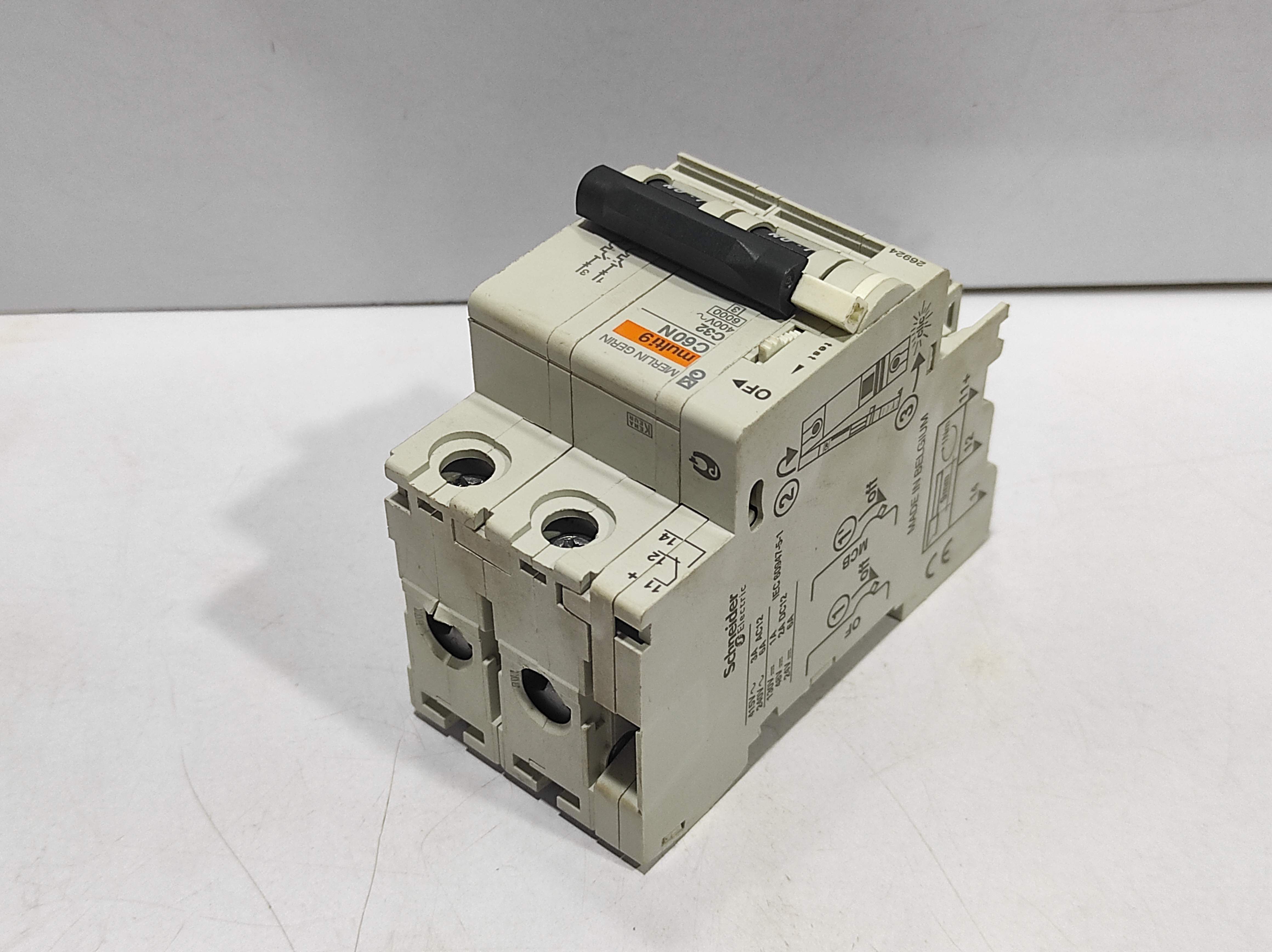 Merlin Gerin Multi 9 C60N C32 Circuit Breaker With Schneider 26924 Auxiliary Contact Block