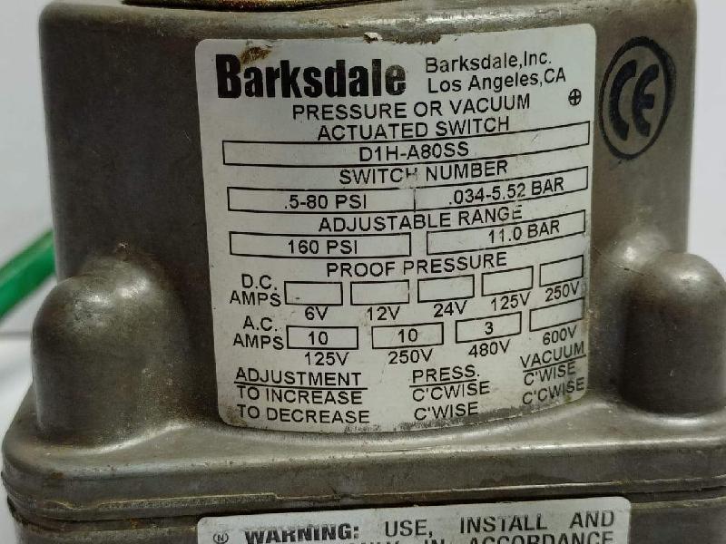 Barksdale D1H-A80SS Pressure Or Vacuum Actuated Switch